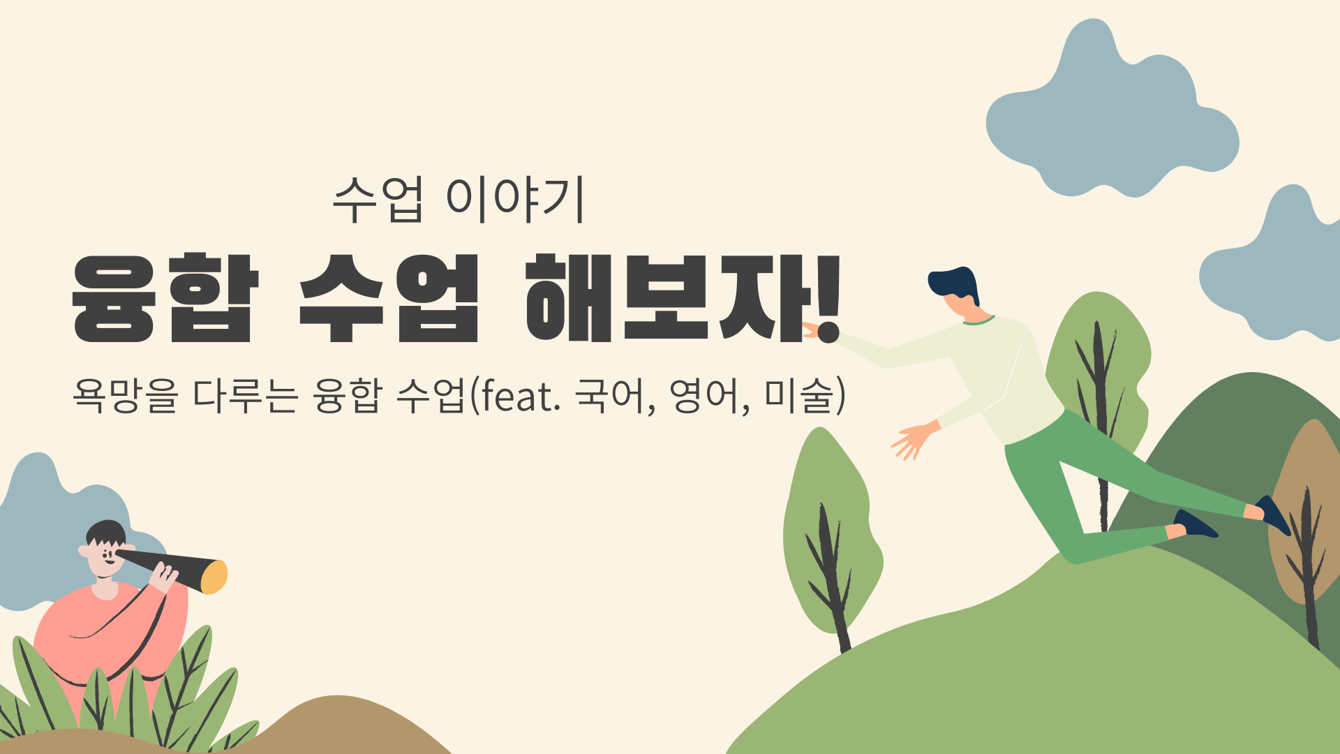 둘째, 시간이 단축된다. 하나의 주제를 여러 교과에서 다루기 때문에 주제의 넓이와 깊이는 심화되지만, 시간은 단축된다. 국어 교과에서만 ‘욕구’라는 주제를 다뤘다면, 관련된 단편 소설이나 설화 등을 새롭게 검색해서 2∼3차시에 걸쳐 다뤄야 했을 것이다. 하지만 영어와 미술 교과에서 관련된 주제를 다뤘기 때문에 국어 시간을 절약할 수 있었다.