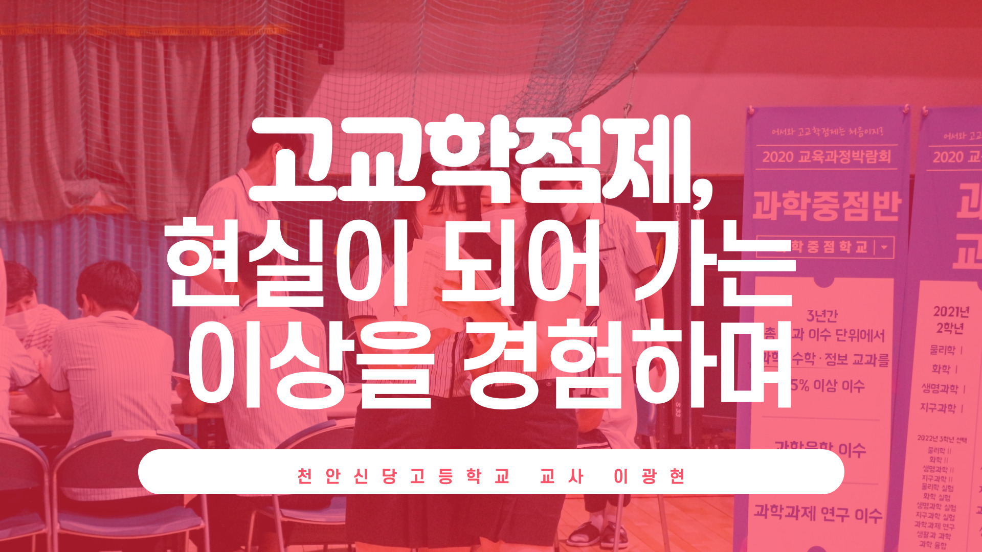 이뤄지지 않을 것 같던 이상이 고교학점제라는 이름으로 현실이 될 준비 단계에 들어갔다. 미래사회의 도래와 직업 세계의 변화, 학령인구의 감소 등 다양한 배경 요인을 바탕으로 공교육의 정상화와 책임교육의 실현을 목표로 한 학생 선택형 교육과정의 운영은, 그야말로 아이들이 스스로 선택하고 구성한 개별 교육과정을 이수하고 졸업하는 맞춤형 교육과정이라는 점에서 그동안 실현되지 않았던 이상적 모습이라고 생각한다.