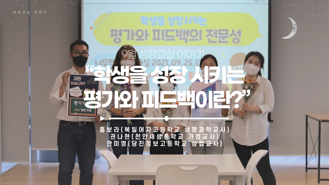 지금까지의 이야기는 누구 한 명의 이야기가 아닌 성장 교실 9월 교육과정 ‘쫄깃한 평가’팀이 과정을 함께하며 나눈 생각과 경험들입니다. 3월 전에는 만난 적 없던 선생님들과 같은 고민을 나누기 시작했고 지금은 고민의 끝자락에서 함께 성장해온 ‘분석과 디테일이 돋보이는 나현샘’, ‘꼼꼼한 정리와 설명력이 돋보이는 미영샘’, 그리고 ‘생각이 많은 팀장 보라샘’의 이야기입니다. 처음 평가와 피드백을 함께 다루고자 했습니다. 평가를 중심으로 탐구하며, ‘학생의 성장을 도울 수 있는 피드백’은 어떤 것일지 그리고 현재 교실에서 이를 적용할 수 있는 방법은 무엇일지에 대해 또 공부하고 싶다는 생각도 들었습니다. 아쉬움이 또 다른 성장의 시작이 되길 바라며, 이제 나의 학교에서 학생을 성장시키는 평가와 피드백을 실천해 보기로 마음먹었습니다. 우리 함께 평가해요.