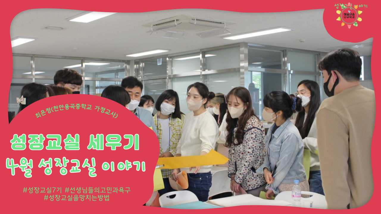 해가 지날수록 교직 경력은 늘어나고 있지만, 여전히 학생과 학부모는 상대하기 어렵고 ‘좋은 수업이란 도대체 무엇일까?’, ‘어떻게 해야 좋은 수업을 할 수 있을까?’라는 고민을 매년 하고 있었는데 올해 성장교실 선생님들과 함께 고민을 해결해 나갈 교육과정을 운영한다는 생각에 조금 설레며 기대가 되었습니다.