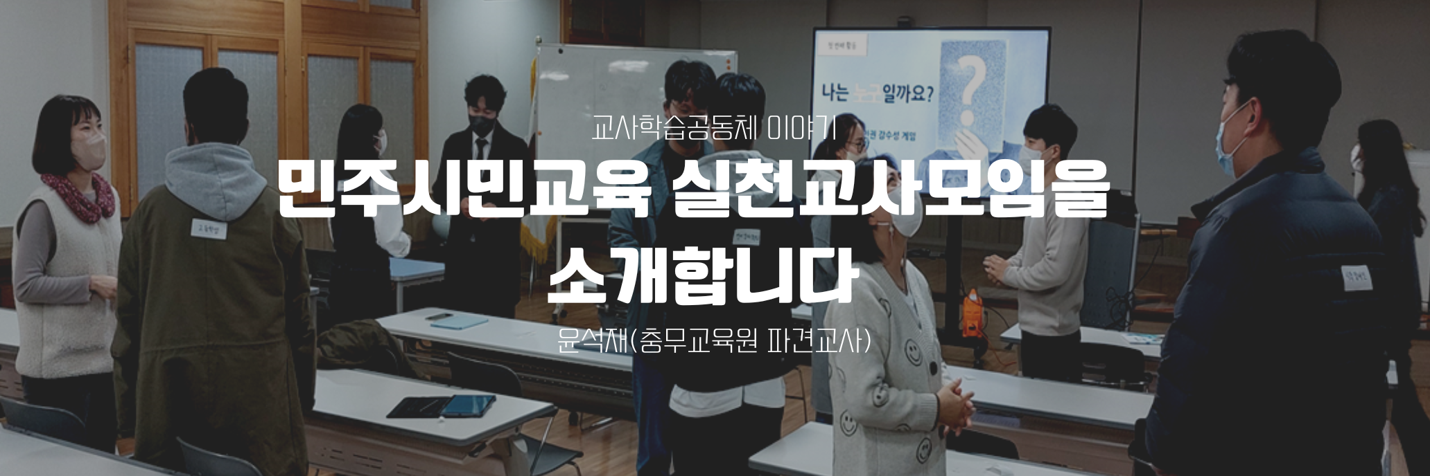 2020년 봄, ‘우리는 민주 시민을 키워내고 있는가?’라는 같은 고민을 가진 여덟 분의 선생님이 모였습니다. 임용 시험을 볼 때 수차례 밑줄치며 외우던 ‘민주시민성 함양’이라는 교육 목표를 얼마나 실천하고 있는지 자문했을 때, 자신 있게 답하지 못하는 현실에 대한 반성이 ‘민주시민교육 실천교사모임’을 이루게 했습니다. 첫해에는 수업 개선이나 전문성 함양과 같은 목표는 잠시 미뤄두고, 책을 읽으며 ‘우리는 어떻게 하고 있는가?’, ‘앞으로 무엇을 해야 하는가?’에 대한 이야기를 나누었습니다. 둘째 해에는 주로 ‘어떤 시민을 만들어야 하는가?’를 함께 고민하면서 교육부에 정책을 제안했습니다. 셋째 해부터는 민주 시민을 만드는 방법을 찾고, 다듬으려 노력하고 있습니다. 해가 지날수록 함께하는 선생님의 수가 늘어 지금은 스물 세분의 선생님이 속해 계십니다.