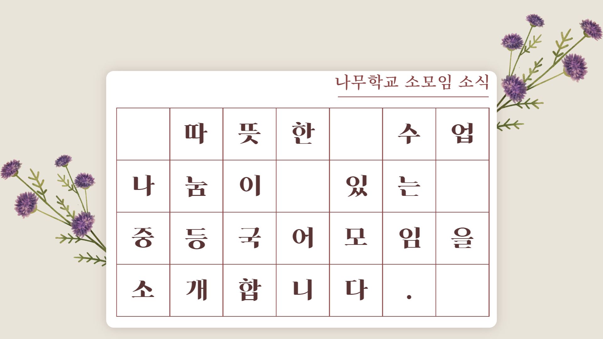 저희 모임이 따뜻한 위로와 격려 속에서 든든한 배움이 있는 곳이라고 말하고 싶어요. 국어교과 모임이 궁금하고 관심이 있는 선생님들께서 문을 두드려 주시면 감사하겠습니다.